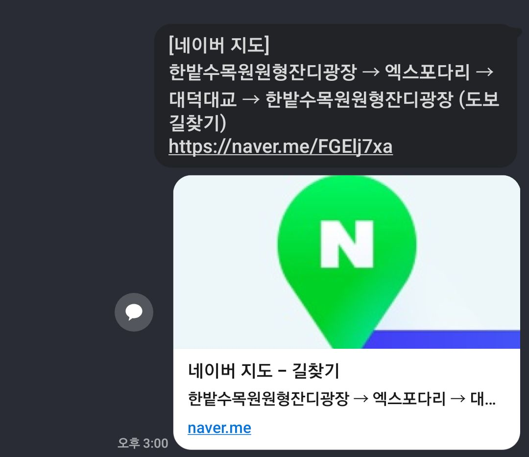 - 카카오톡 등 원하는 곳으로 경로를 공유할 수 있다.